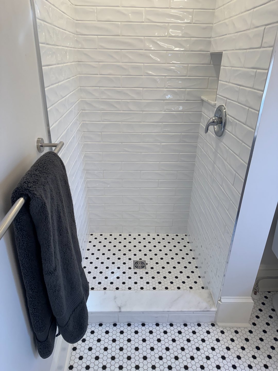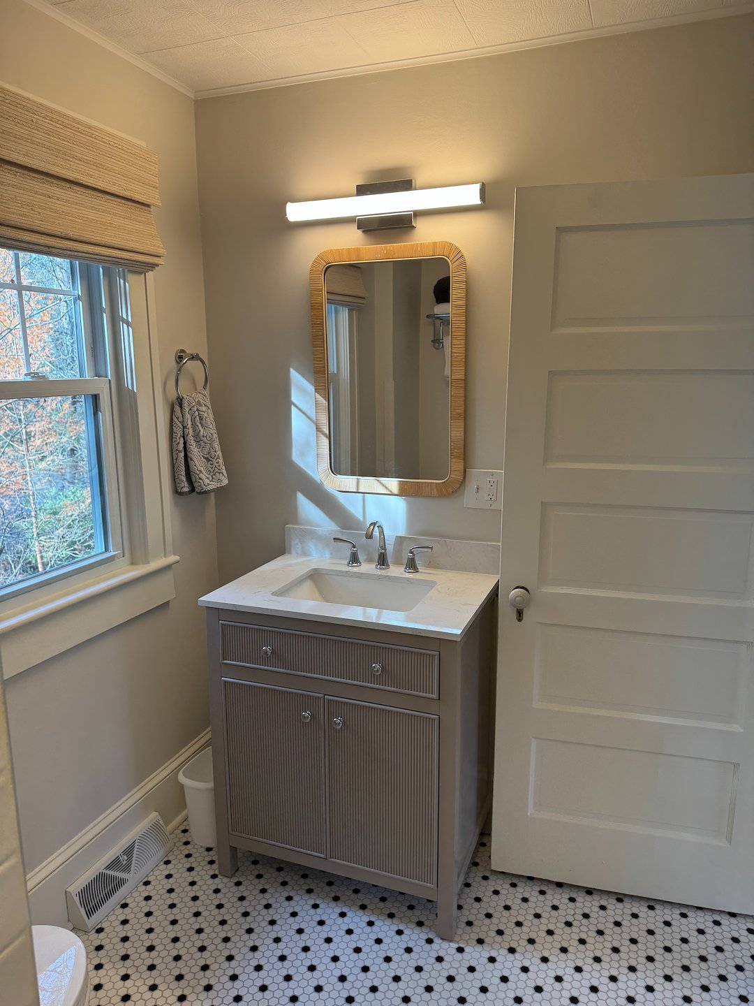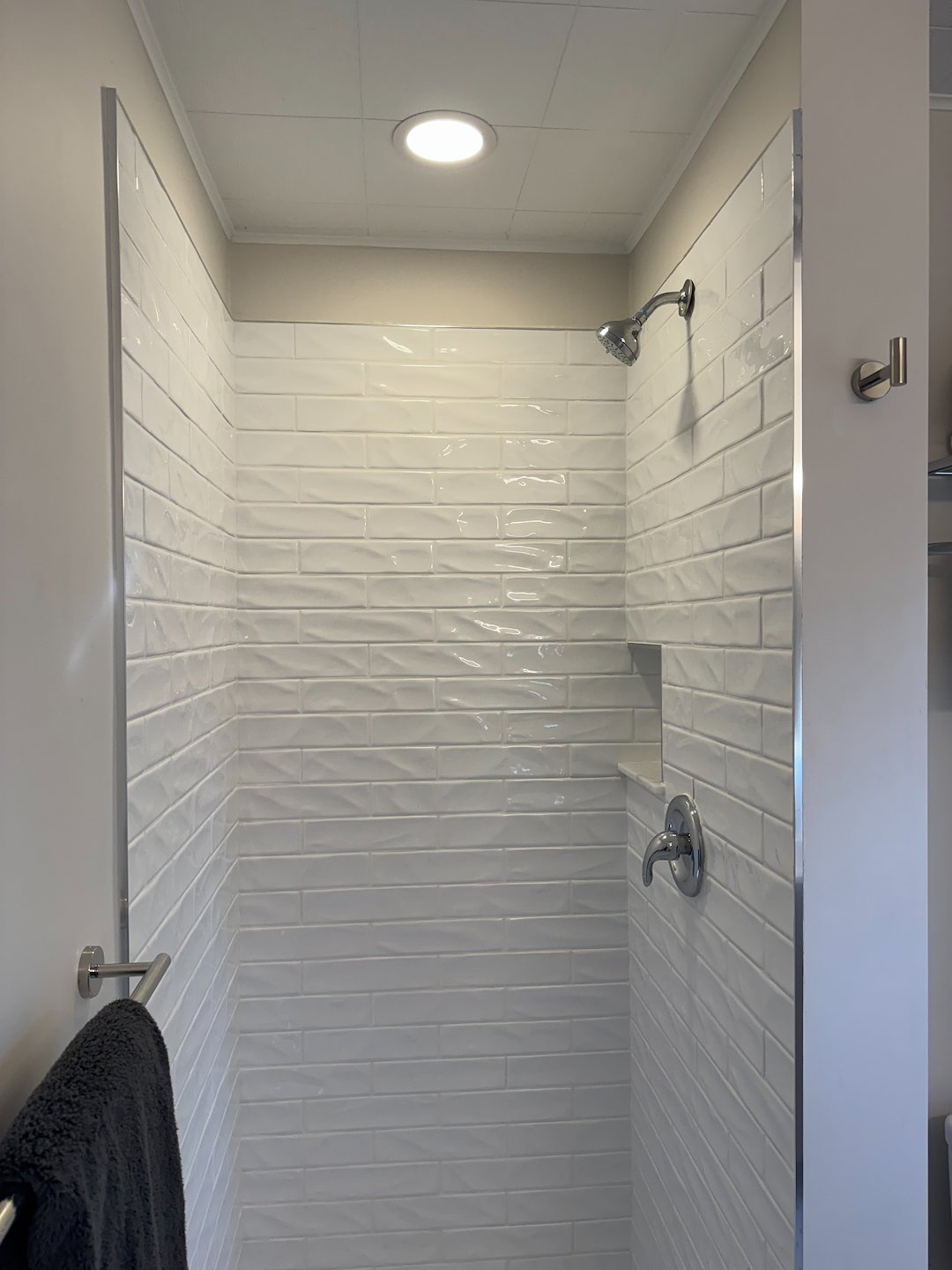 The bathroom was completely redone as part of the ADU remodel. We tiled a new custom shower using the Schluter system, which provides a waterproof base and reliable support for tile, reducing the risk of water damage over time. Tile layout was planned for both aesthetics and ease of cleaning. New fixtures were added to improve usability and update the look, and the overall layout was optimized within the existing footprint.